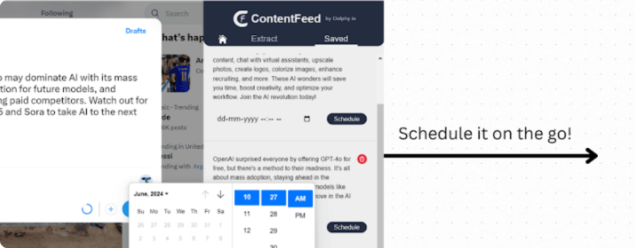 The extension includes a scheduling feature that enables users to automate tweet posting. Users can set specific times for tweets to be posted, ensuring consistent and timely content delivery.