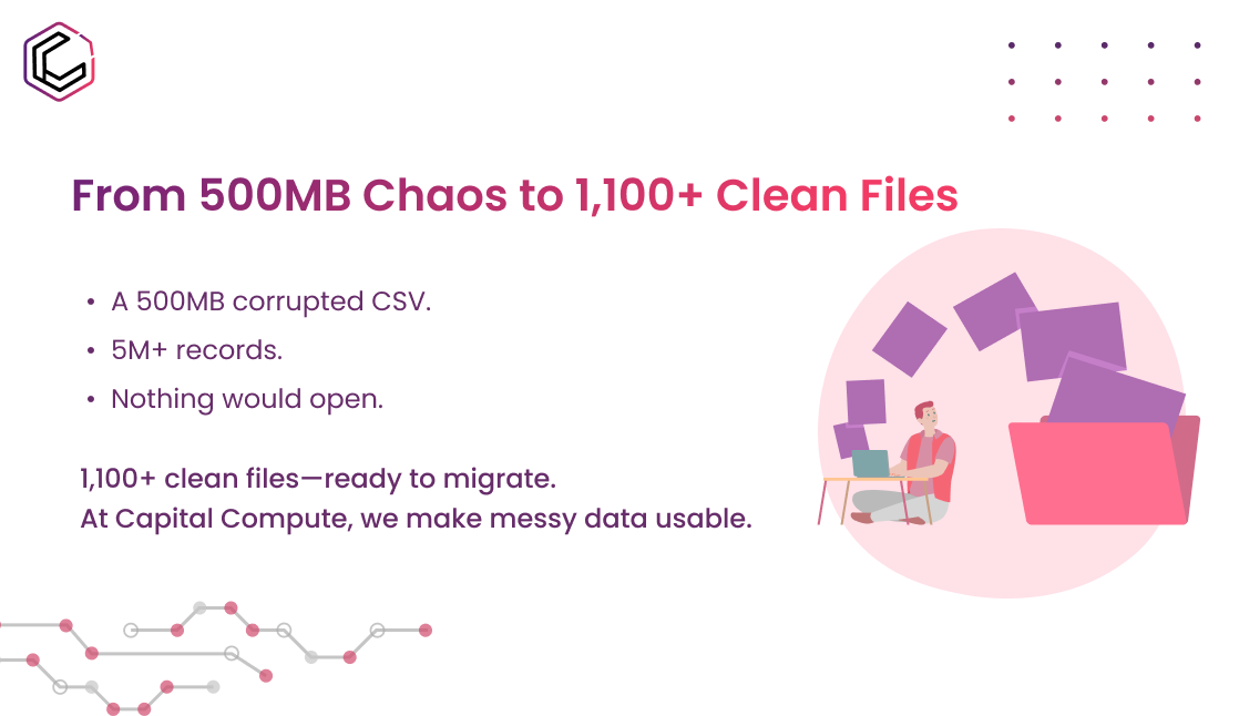 When a business migrates to a new system, the software isn’t always the problem. More often, the biggest challenge is the data, especially when that data is messy, oversized, or corrupted. That’s exactly what one of our clients faced.